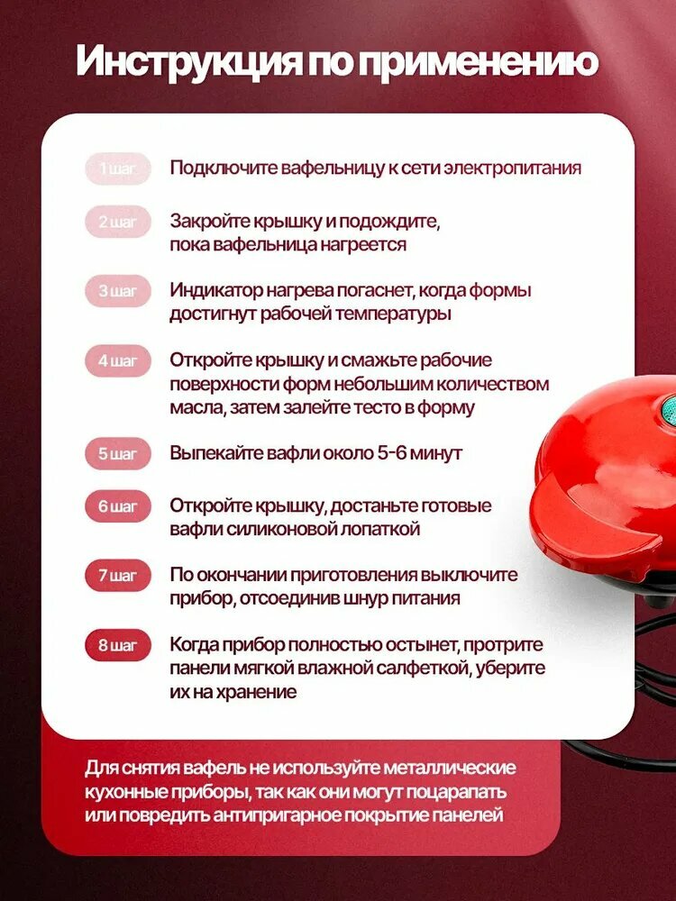 Вафельница vafl 350 Вт, красный,Портативное устройство с антипригарным покрытием