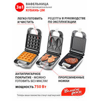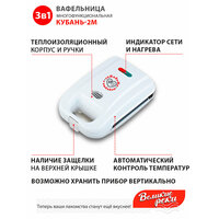 Купить Вафельница Великие Реки Кубань-2М белая, 3 в 1, съемные панели, 750 Вт, трафарет для сахарной пудры в подарок с доставкой по всей России.