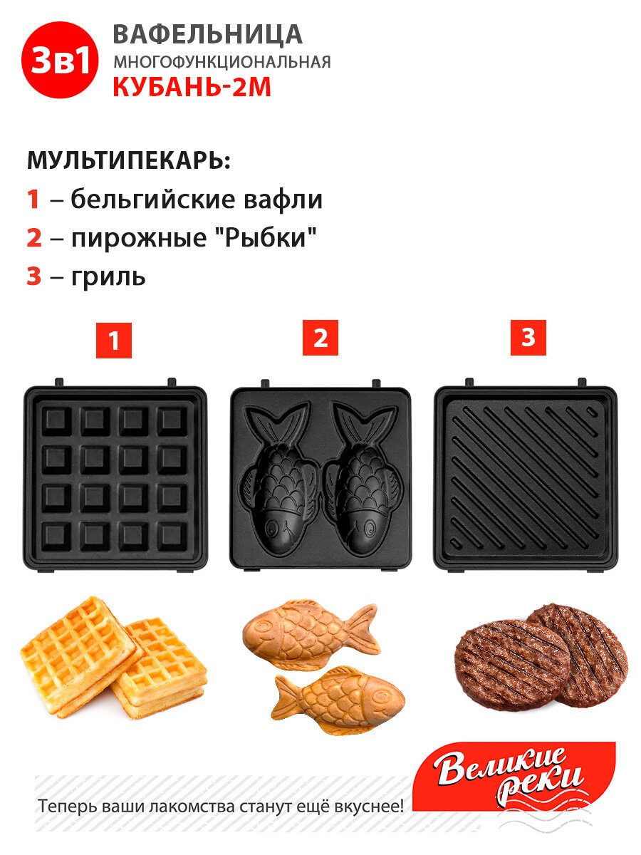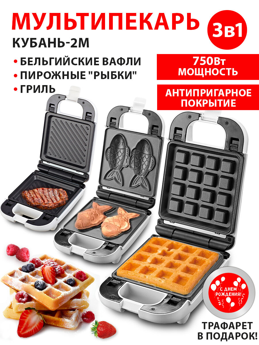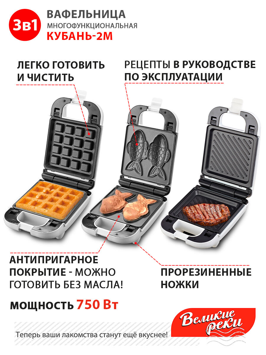 Вафельница Великие Реки Кубань-2М белая, 3 в 1, съемные панели, 750 Вт, трафарет для сахарной пудры в подарок: сравнение цен, характеристики, фото, актуальное наличие и цены.
