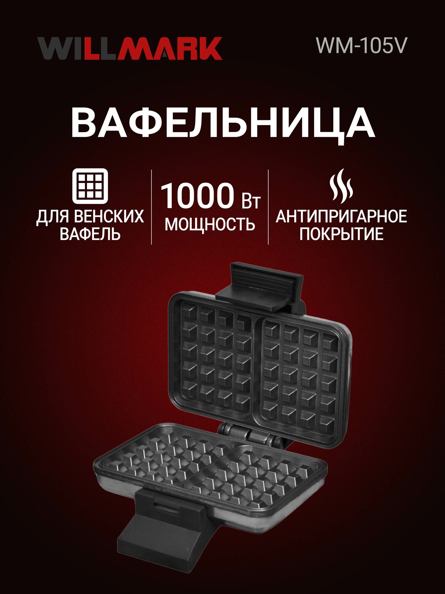Вафельница WILLMARK WM-105V (1000Вт, форма венские вафли, терморег, антиприг. покр, инд. готовности): сравнение цен, характеристики, фото, актуальное наличие и цены.