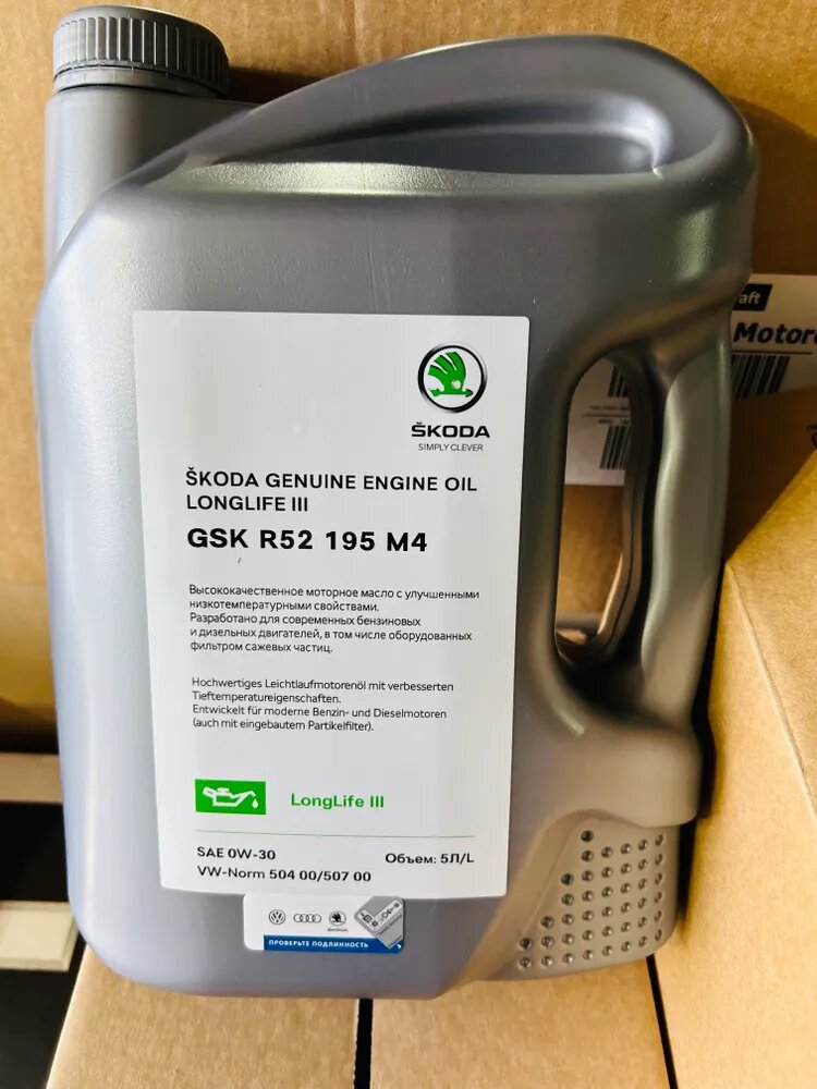 Моторное масло VAG Skoda LONGLIFE III 0W-30 GSKR52195M4 Синтетическое 5 л: сравнение цен, характеристики, фото, актуальное наличие и цены.