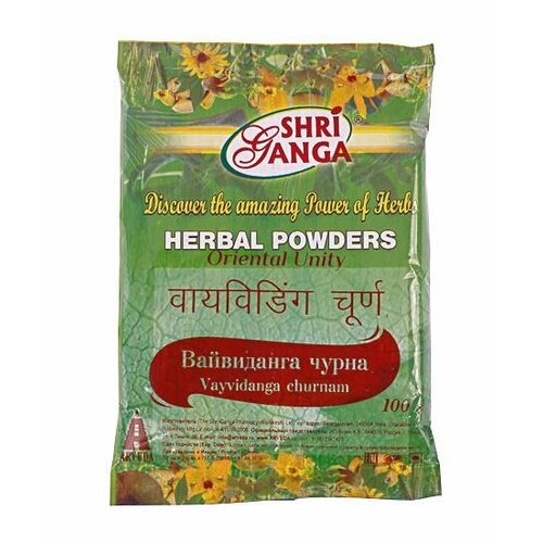 Показания к применению: Эмбелия кислая является одной из старейших и широко и часто используемых трав в традиционной индийской медицин, также ее применяют в гомеопатии. Иногда ее называют ложным черным перцем, потому что она имитирует перец по внешнему виду. Это растение используют в различных формах препаратов и во многих сочетаниях с другими растениями.Вайвиданг (Виданга) чурна / Vaividang churna обладает вяжущими, глистогонными, тонизирующими, пищеварительными, ветрогонными, антиоксидантными, антибактериальными, антисептическими, болеутоляющими, жаропонижающими, седативными свойствами, уравновешивает Вата и Капха доши, расаяна, природное противозачаточное средство.Главное использование в Аюрведе Вайвиданг (Виданга) чурны / Vaividang churna, безопасное для всех возрастных групп, — в качестве мощной естественной пищевой добавки для дегельминтизации кишечника, она убивает различных паразитов, таких как аскариды, бычьий цепень, эхинококк, круглый, ленточный черви и других паразитов, применяется при токсокарозе, шистоматозе, трихинеллезе, энтеробиозе и других заболеваниях. При этом употребление дополнительных слабительных для вывода мертвых червей не требуется, поскольку чурна сама по себе является мягким слабительным.Согласно Аюрведе Вайвиданг (Виданга) чурна / Vaividang churna работает и как лучшее средство при всех кожных заболеваниях, в том числе инфекционных и грибковых, таких как стригущий лишай, хронические дерматиты, чесотка, проказа и прочие. Она избавляет от зуда, заживляет раны, используется как внутренне, так и наружно в виде пасты в этих случаях.Вайвиданг (Виданга) чурна / Vaividang churna снижает уровень глюкозы в крови, холестерина, очищает кровь, улучшает работу пищеварительной системы, облегчает чрезмерную потерю аппетита, уменьшает метеоризм, отрыжку, помогает при запорах, коликах, геморрое, диспепсии, желтухе, асците, расстройстве желудка, анорексии, рвоте, отравлении, гастрите, широко используется в лечении потери веса. При этом чурна умиротворяет чрезмерную жажду человека, имеет мягкое мочегонное действие и поэтому используется при дизурии.Вайвиданг (Виданга) чурна / Vaividang churna полезна в терапевтической чистке частей тела выше ключиц и проблемах, связанных с областями глаз, ушей, головы и ЛОР-заболеваниями. Эмбелия кислая применяется как ингредиент знаменитых Ану Тайлам и Шадбинду Тайлам, а мелкий порошок (чурна) используется для введения в нос при хроническом рините и других заболеваниях головы. Это очень хорошее средство при лихорадке, астме, бронхите, легочных заболеваниях, одышке, кашле, мигрени, боли в горле, головной боли, головокружении. Водный отвар рекомендуется использовать при кариесе, зубной боли, язвах во рту, запахе изо рта, проблемах с деснами, а пасту можно применять для очищения полости рта и зубов и профилактики кариеса.Вайвиданг (Виданга) чурна / Vaividang churna используется в Аюрведе также при заболеваниях головного мозга и нервной системы, нервной слабости, слабоумии, психологических расстройствах, параличе лицевого нерва, эпилепсии и безумии.Чурна омолаживает весь организм, укрепляет тело, задерживает процесс старения, предотвращает влияние возраста, поднимает иммунитет и тонус организма, избавляет от общей слабости, защищает от сердечных заболеваний, улучшает состояние и здоровье кожи и качество волос, мо