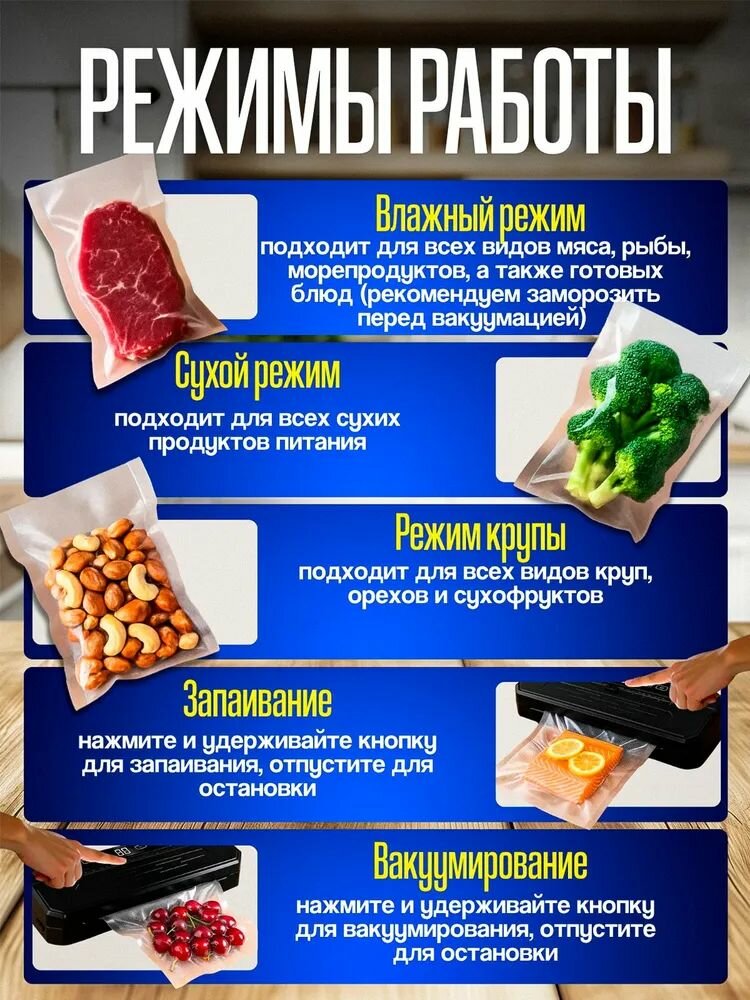 Купить Вакууматор для продуктов с резаком и пакетами/Вакуумный упаковщик с запайкой с доставкой по всей России.