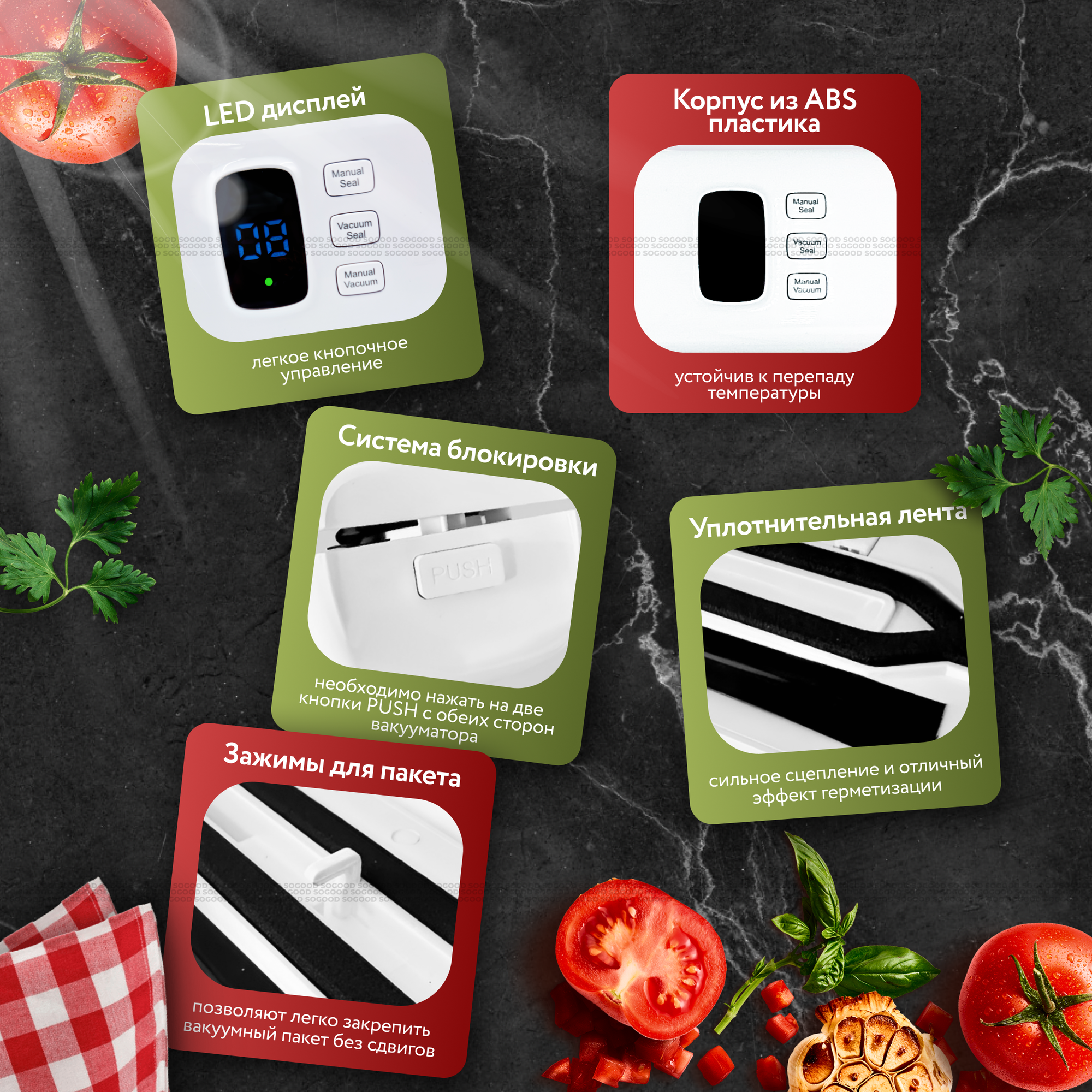 Купить Вакууматор для продуктов с запайкой, вакуумный упаковщик для кухни 3 режима с доставкой по всей России.