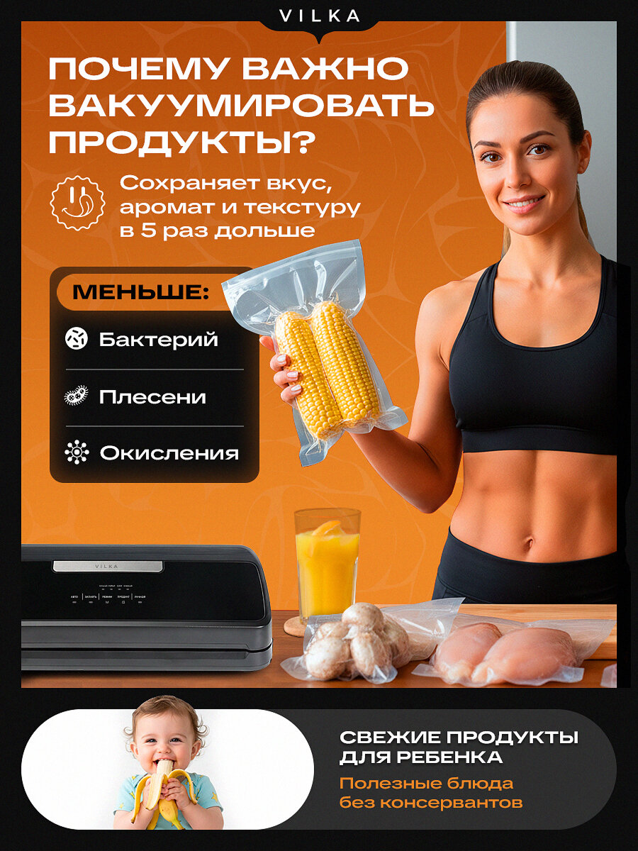 Вакууматор для продуктов VILKA VZ-25, ~80 кПа, для рулонов, с резаком, с насосом, домашний, вакуумный упаковщик, черный: сравнение цен, характеристики, фото, актуальное наличие и цены.