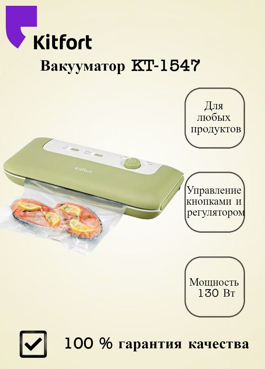 Вакууматор Kitfort KT-1547, для вакуумирования, оливковый, 130Вт, 38см х 17см х 6см: сравнение цен, характеристики, фото, актуальное наличие и цены.
