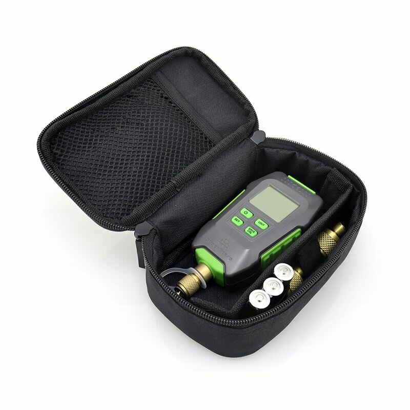 Цифровой вакуумметр с электронным дисплеем для подсчета давления (99 кПа - 0,1 Па; ±5%; -5 - +50°С). Преимущества: использование профессиональных датчиков вакуума для точного измерения степени вакуума, интеллектуальная подсказка мощности, отчетливо видна оставшаяся мощность, звуковой сигнал управления зуммером, подсказка значения настройки целевого вакуума, четыре национальных стандартных единицы (Па / мбар / мм рт. ст./микрон), цифровой дисплей с большим экраном, светящийся дисплей HD 720P Диапазон 99999Pa~0.1 Пa, 740000~0.75 микрон Точность 0.1Pa~1000 Па; Reading±5%(на 20℃) Разрешение 0.1Па(<10Па); 1Па(<100Па); 10Па(<1000Па) Единица измерения Па, мБар, мм рт. ст, торр, вдох, Мкм Время автономной работы 40 часов (3×AA) Максимальное допустимое давление 0.5мПа/72PSI Температура применения -5~50℃ Звуковой сигнал 90Дб, выключение через 10 секунд Входное отверстие 7/16"~20UNF(1/4"SAE)