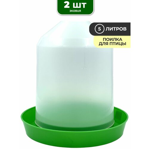Используйте вакуумную поилку донимпекс объёмом 5 литров, чтобы удовлетворить потребности домашней птицы в чистой питьевой воде. Поилка сделана из пластика белого и зелёного цветов. Пластик - легкий, прочный и устойчивый материал, который легко поддерживать в чистоте. Идеально подходит для использования на улице и внутри помещений. Просто залейте воду, закрутите крышку и переверните поилку. Эта поилка не подходит для цыплят. Возможно использование различных водорастворимых витаминных добавок. Вакуумная поилка подойдет для содержания птиц или кроликов. Животное не испытывает стресс, который возникает при отсутствии корма, т. к. имеет постоянный доступ к пище и воде. Преимуществом использования таких поилок является их гигиеничность, ведь корм или вода находятся внутри "бункера", что защищает их от попадания помета. Такую поилку легко отмывать от грязи, т. к. пластик обладает ровной поверхностью. Изготовлена поилка из гигиеничного, высококачественного пластика, безопасного и при этом очень прочного. Питьевая вода заливается в емкость, затем сверху крепится тарелка после чего поилка переворачивается. В таком виде ее можно поставить на пол или при желании подвесить за предусмотренное на емкости кольцо. Такую поилку легко отмывать от грязи, поскольку пластик обладает ровной поверхностью. Эту неприхотливую в применении и не менее приятную на вид поилку, Вы сможете использовать в течение длительного времени.