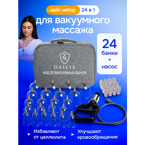 Этот набор вакуумных банок для массажа содержит 24 шт баночек с магнитами и насосом, что позволяет проводить комплексный уход за разными зонами тела: бедра, ягодицы, живот, спина, шея, руки и ноги. Вакуумные банки для массажа легко использовать дома для самомассажа или профессиональной косметологии. Подходит для девушек и женщин любого возраста, а также мужчин, заботящихся о здоровье.