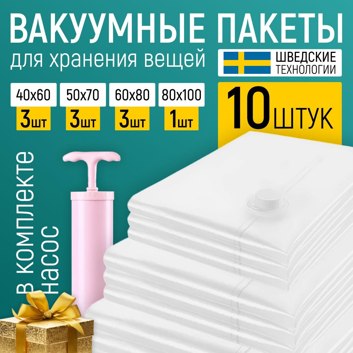 Вакуумные пакеты для одежды, 10 шт, с ручным насосом, с клапаном, прочные мешки для хранения вещей и путешествий: сравнение цен, характеристики, фото, актуальное наличие и цены.