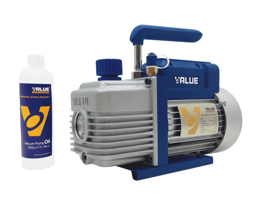 Одноступенчатый вакуумный насос Value VE125N - это высокоэффективный инструмент для вакуумирования холодильных систем и заправки кондиционеров. Этот компактный вакуумный насос весом 7.1 кг обеспечивает производительность 70 л/мин, что делает его идеальным выбором для монтажа и обслуживания сплит-систем, холодильников и другого климатического оборудования. Ключевые особенности: Производительность: 70 л/мин; Вес: 7.1 кг; Рабочие напряжение и частота тока насоса: 230В / 50Гц; Диапазон рабочих температур: от 0 до +50 °С; Мощность: 0,183 кВт; Глубина достигаемого вакуума: 150 микрон (20 Па); Присоединительные размеры: 1/4"; Объем масла: 250 мл; Тип: одноступенчатый, масляный, пластинчато-роторный; Применение: вакуумирование фреоновых систем, заправка кондиционеров. Насос Value VE125N разработан специально для профессионального использования в сфере монтажа и обслуживания климатической техники. Его компактные размеры и небольшой вес обеспечивают удобство транспортировки и работы в различных условиях. Благодаря высокой производительности, вакуумный насос для кондиционеров позволяет быстро и эффективно удалять влагу и загрязнения из холодильных контуров, что критически важно для правильной работы систем кондиционирования и холодильных установок. Роторный вакуумный насос обеспечивает стабильную работу и долгий срок службы. Масляная система смазки гарантирует надежную защиту внутренних компонентов и поддержание высокой производительности на протяжении всего срока эксплуатации. Профессиональный вакуумный насос — это надежный помощник для специалистов по монтажу и обслуживанию климатического оборудования, который обеспечивает высокое качество работы по вакуумированию кондиционеров и экономию времени при выполнении профессиональных задач.