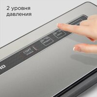 длина шнура электропитания 1,2 м; номинальная мощность 120Вт; возможность работы при открытой крышке; сопло для работы с вакуумными контейнерами; индикация кнопок управления и режимов работы; защита от поражения электрическим током; отсек для хранения сетевого шнура