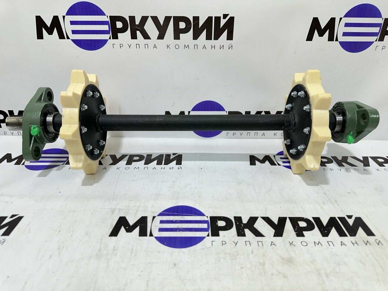 Вал ведущий 510мм на 500 гусеницу с подшипниками UCFL205 (самоцентрирующиеся).