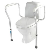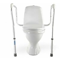 Поручень для унитаза 10540 облегчает процесс использования туалета пожилым и ослабленным людям. Поручни имеют продуманную эргономичную форму: ножки располагаются ближе к унитазу, чтобы не мешать при движении, подлокотники выдвинуты вперед, чтобы удобно было опираться. Поручни изготовлены из прочного и легкого алюминиевого сплава. Данный материал устойчив к воде и дезинфицирующим средствам. Устанавливать поручень легко: он опирается на полку между сливным бачком и стульчаком унитаза. Телескопические ножки позволяют индивидуально настроить высоту поручня. Резиновые наконечники препятствуют скольжению.