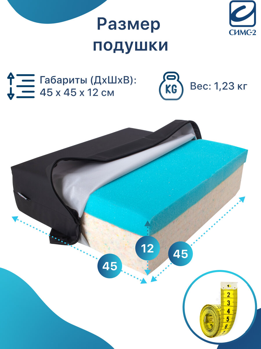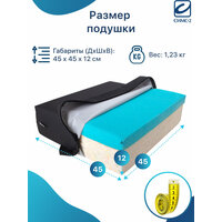 Подушка имеет размеры 45 см в длину, 40 см в ширину и 12 см в высоту, что позволяет обеспечить оптимальную поддержку и комфорт для пользователя.