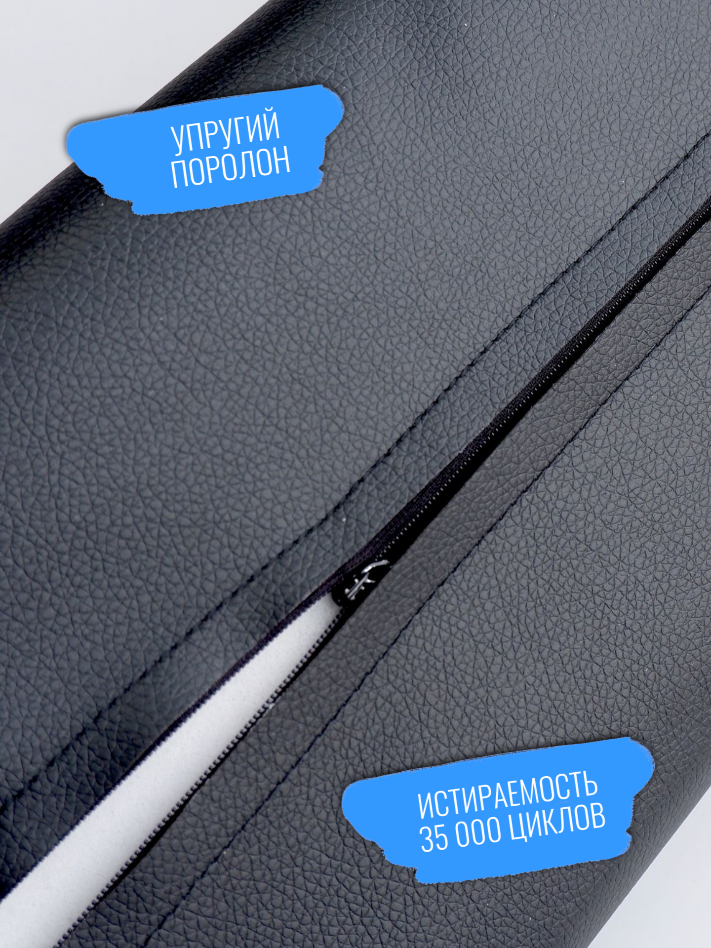 Валик представляет собой длинный цилиндр, чехол сшит из качественного кожзама, а наполнитель- цельный поролон.