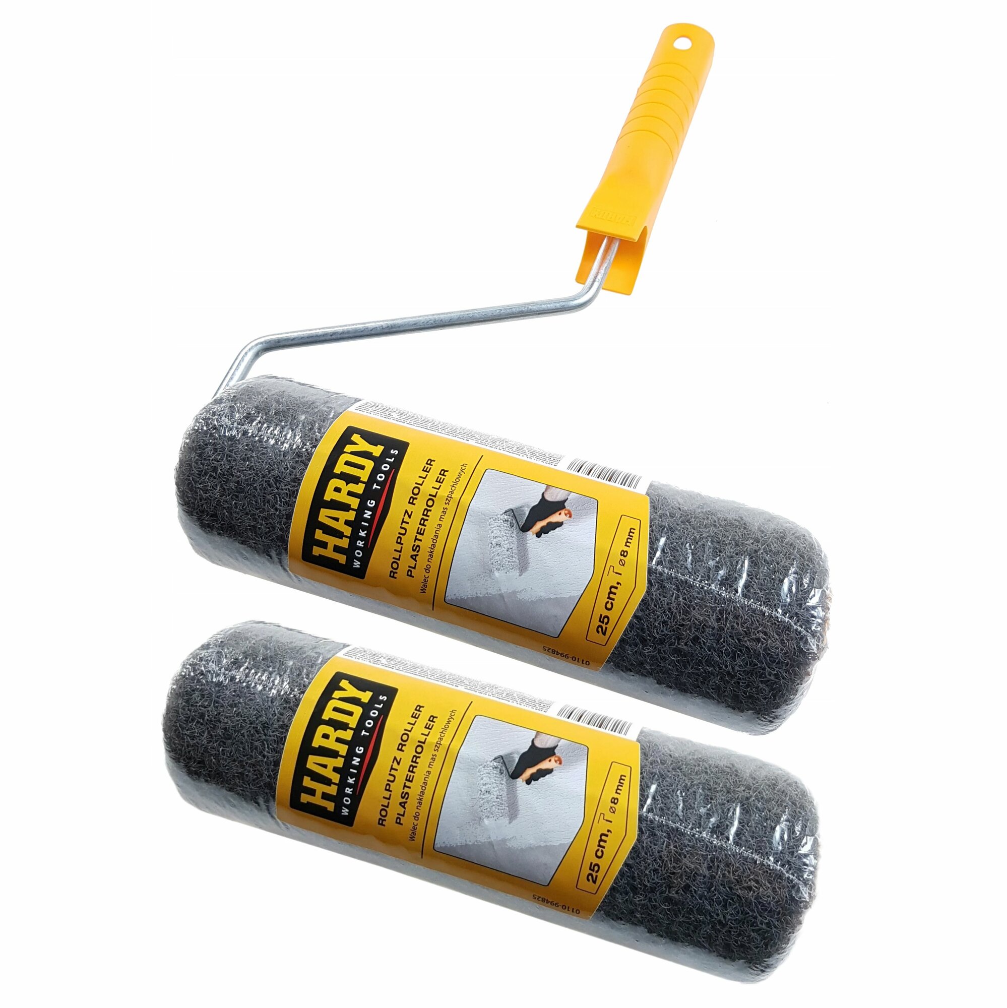 Валик для шпаклевки HARDY 250 мм, 0111-994825 с удобной пластиковой ручкой Standart и ролик 0110-994825 используются для нанесения выравнивающих смесей, штукатурки и шпаклевки, а также для нанесения декоративных фактур из штукатурки и шпаклёвки в труднодоступных местах. Отлично подойдет для отделочных и выравнивающих работ. Удобен в работе. Помогает сократить время нанесения шпатлевки.
