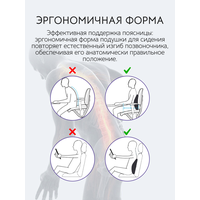 • Эффективная поддержка поясницы: эргономичная форма подушки для сидения повторяет естественный изгиб позвоночника, обеспечивая его анатомически правильное положение.