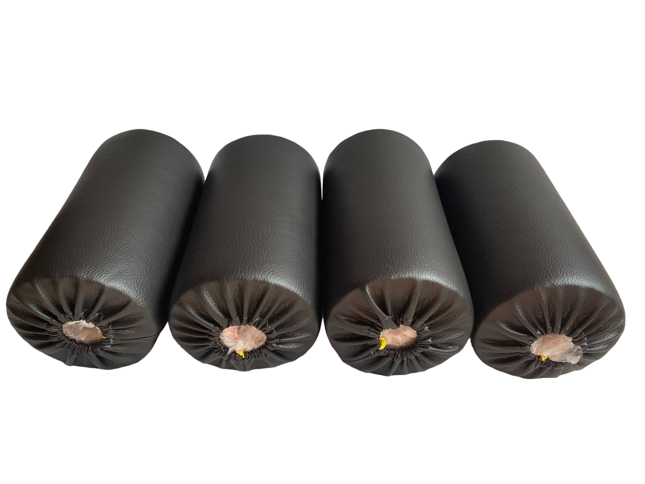Валики изготовлены из спортивного пенополиуретана, что обеспечивает их долговечность и устойчивость к износу. Чехол выполнен из износостойкой эко-кожи, что придает аксессуарам элегантный внешний вид и обеспечивает дополнительную защиту от повреждений.