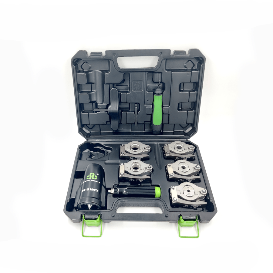 Универсальная развальцовка с эксцентриком , облегченная, со сменными насадками для дюймовых медных и алюминиевых труб диаметром: 1/4", 3/8", 1/2", 5/8" (16mm), 3/4" (19mm). В комплекте 5 насадок для труб разных диаметров, ребристая ручка-держатель, риммер-карандаш, кейс. Проста в использовании и имеет точный результат развальцовки, благодаря фиксаторам и надежным креплениям Высокопрочные кованные обжимки для трубы, изготовлены из алюминиевого сплава. Они очень легки, но обеспечивают большой срок службы, высокую точность развальцовки и удобство в работе. Оснащен ручкой для удобства пользования. Небольшие габариты позволяют вальцевать в узких пространствах.