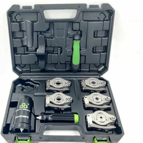 Универсальная развальцовка с эксцентриком, облегченная, со сменными насадками для дюймовых медных и алюминиевых труб диаметром: 1/4", 3/8", 1/2", 5/8" (16mm), 3/4" (19mm). В комплекте 5 насадок для труб разных диаметров, ребристая ручка-держатель, риммер-карандаш, кейс. Проста в использовании и имеет точный результат развальцовки, благодаря фиксаторам и надежным креплениям