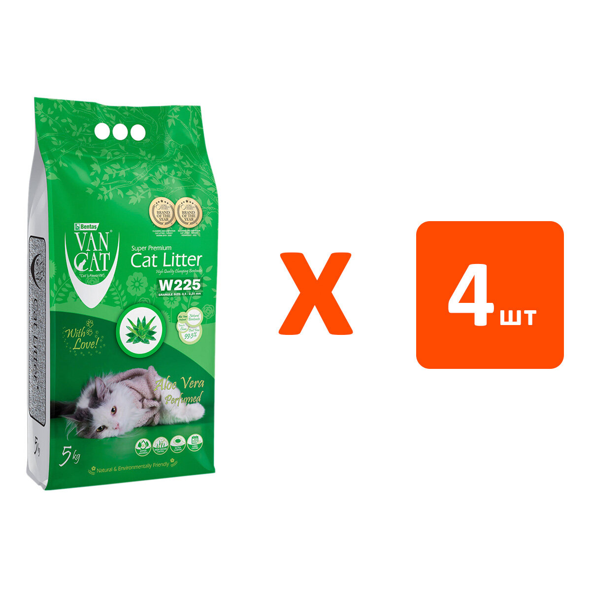 VAN CAT ALOE VERA наполнитель комкующийся для туалета кошек с ароматом алоэ вера (5 кг х 4 шт)
