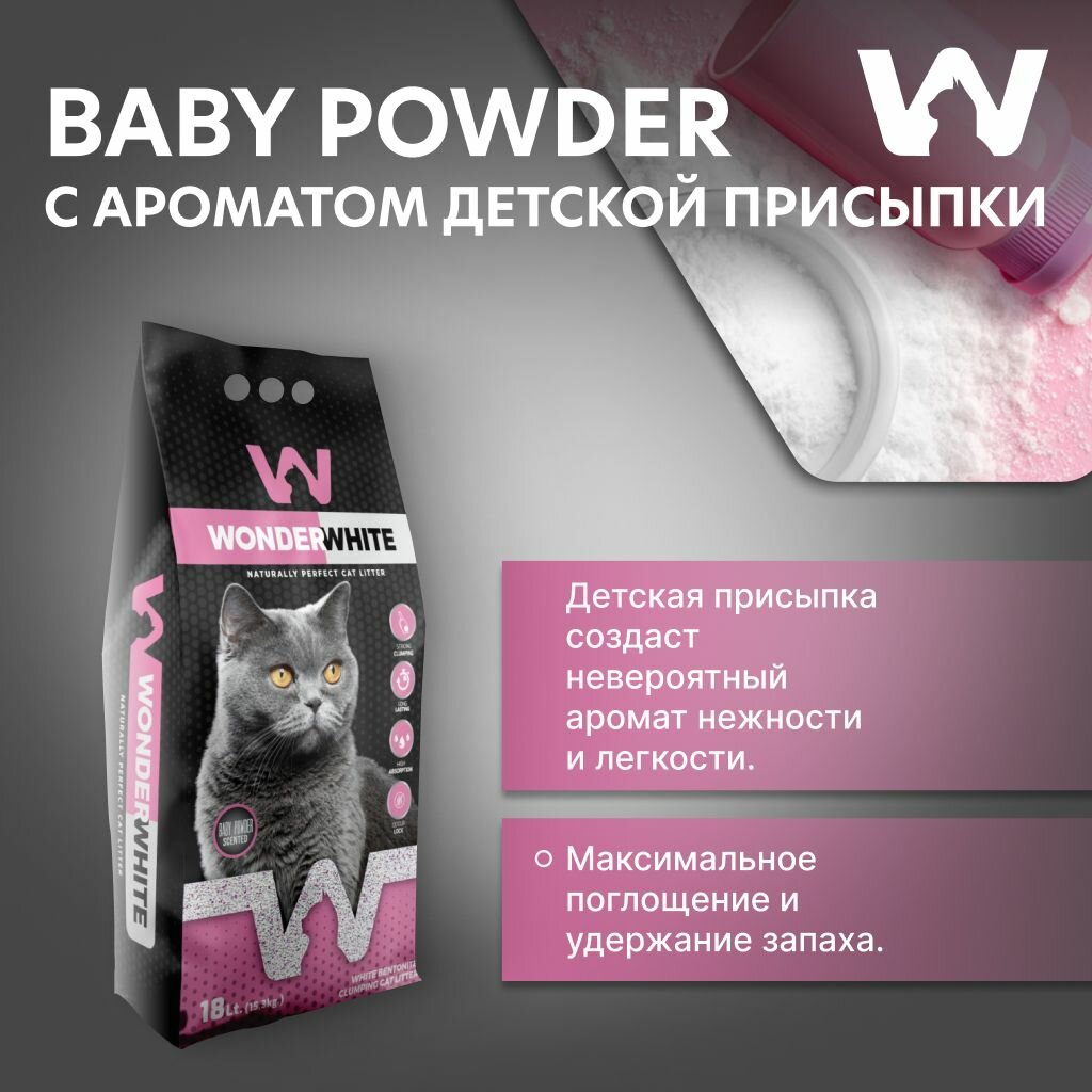 Вандер Вайт Baby Powder Наполнитель комкующийся c ароматом детской присыпки 15,3кг: сравнение цен, характеристики, фото, актуальное наличие и цены.