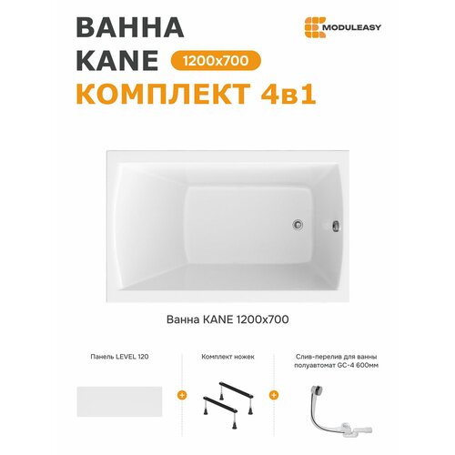 Купить Ванна акриловая 120х70 см KANE комплект 4в1: Прямоугольная ванна, панель, стальные ножки, слив-перелив 01кейн1270кс1+ с доставкой по всей России.