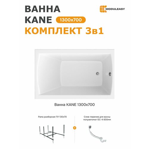 Купить Ванна акриловая 130х70 см KANE MODULEASY комплект 3в1: Прямоугольная ванна, стальная рама, слив-перелив 01кейн1370кс2+ с доставкой по всей России.