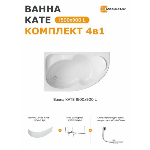 Ванна акриловая 150х90 см KATE комплект 4в1: ванна левый угол, экран, стальной каркас, слив-перелив 01ке1590лкп: сравнение цен, характеристики, фото, актуальное наличие и цены.
