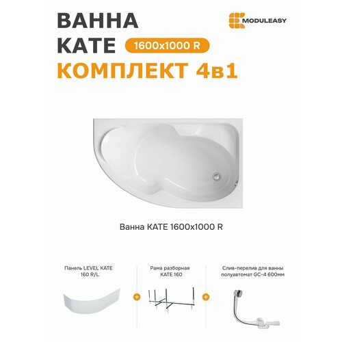 Ванна акриловая 160х100 см KATE комплект 4в1: ванна правый угол, экран, стальной каркас, слив-перелив 01ке1610пкп: сравнение цен, характеристики, фото, актуальное наличие и цены.