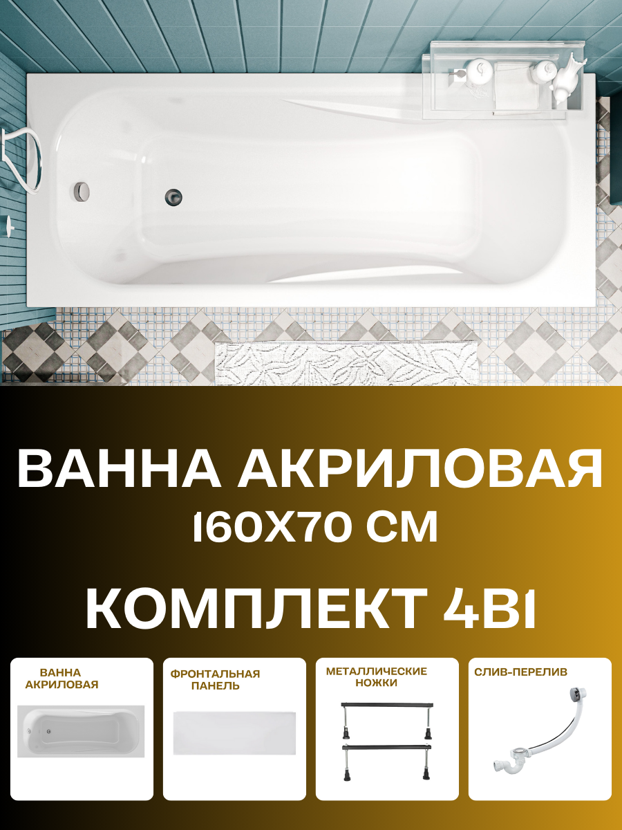 Ванна акриловая 160х70 см 1MARKA CLASSIC в наборе 4 в 1: Ванна, фронтальная панель, ножки, слив-перелив 01кл1670Акс1+: сравнение цен, характеристики, фото, актуальное наличие и цены.