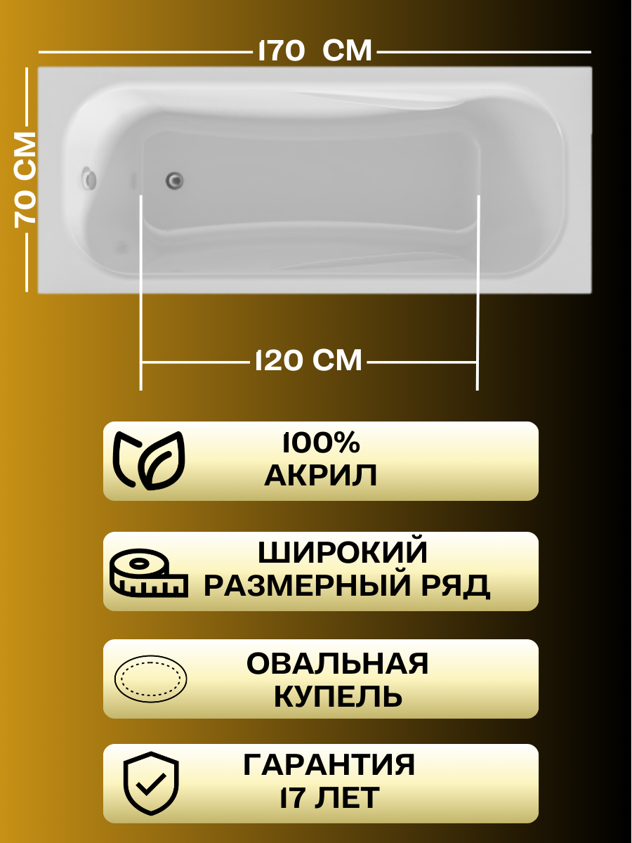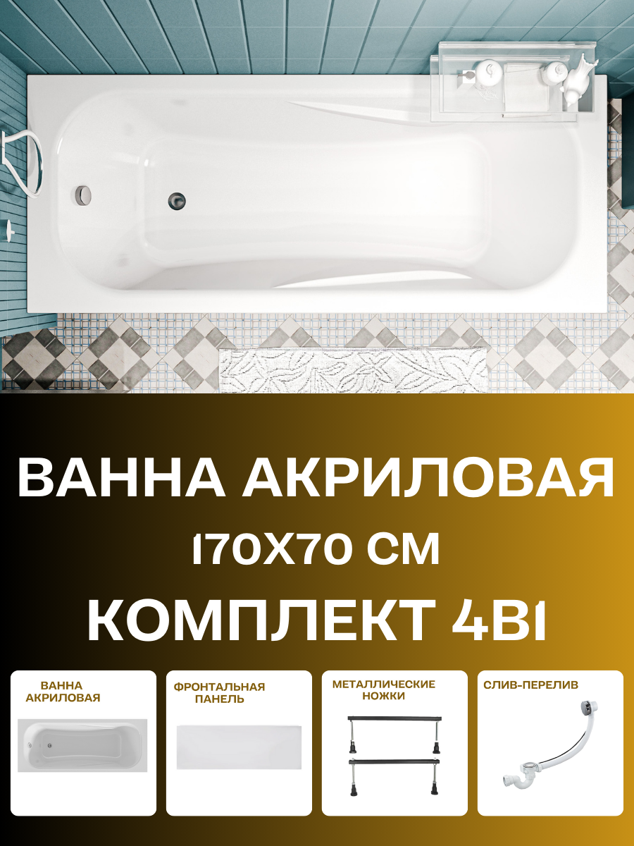 Ванна акриловая 170х70 см CLASSIC комплект 4в1: Ванна, фронтальная панель, усиленный ножки, слив-перелив 01кл1770Акс1+: сравнение цен, характеристики, фото, актуальное наличие и цены.