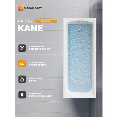 Купить Ванна акриловая 180х75 см KANE Прямоугольная белая, 100% сантехнический акрил, MODULEASY 01кейн1875 с доставкой по всей России.