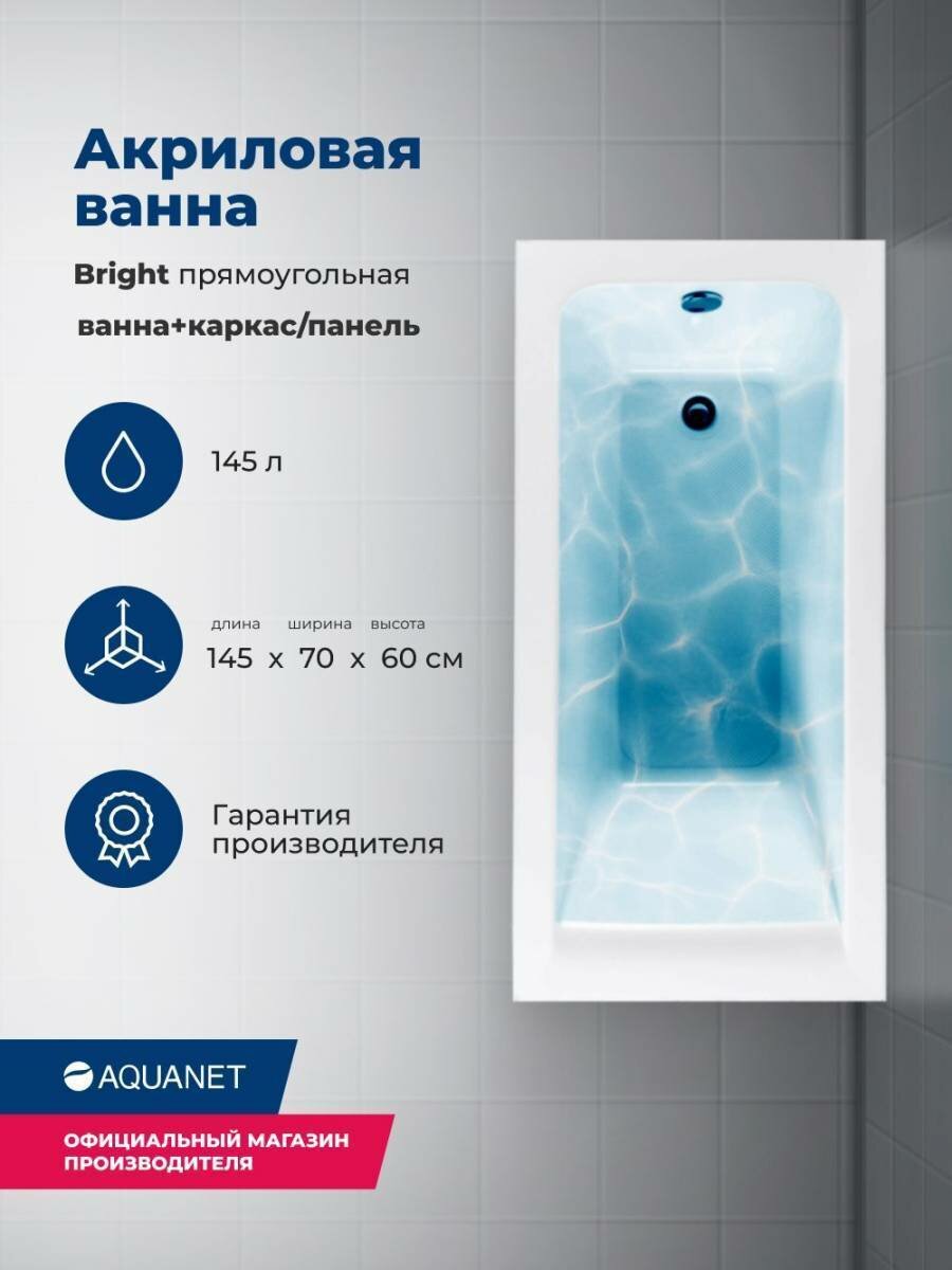 Ванна акриловая Aquanet BRIGHT 145*70 . Комплект 3 в 1: ванна, каркас, фронтальная панель: сравнение цен, характеристики, фото, актуальное наличие и цены.