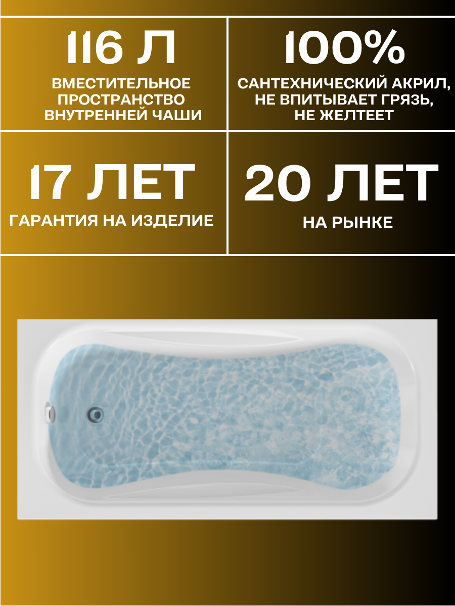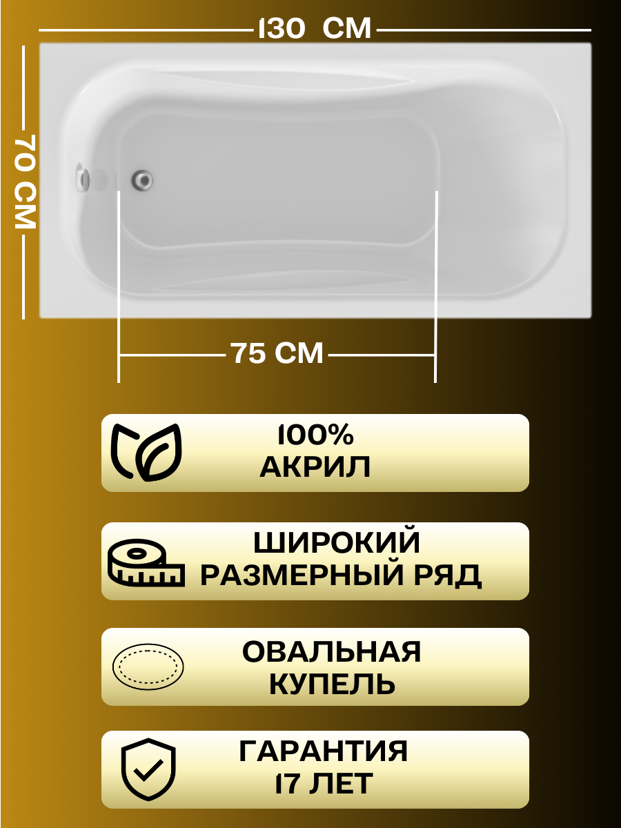 Купить Ванна акриловая 130х70 см 1MARKA CLASSIC в наборе 4 в 1: Прямоугольная ванна, панель, ножки, слив-перелив 01кл1370Акс1+ с доставкой по всей России.