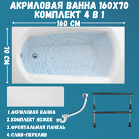 Ванна акриловая ELEGANCE 160х70: ванна, ножки, экран, сифон: сравнение цен, характеристики, фото, актуальное наличие и цены.