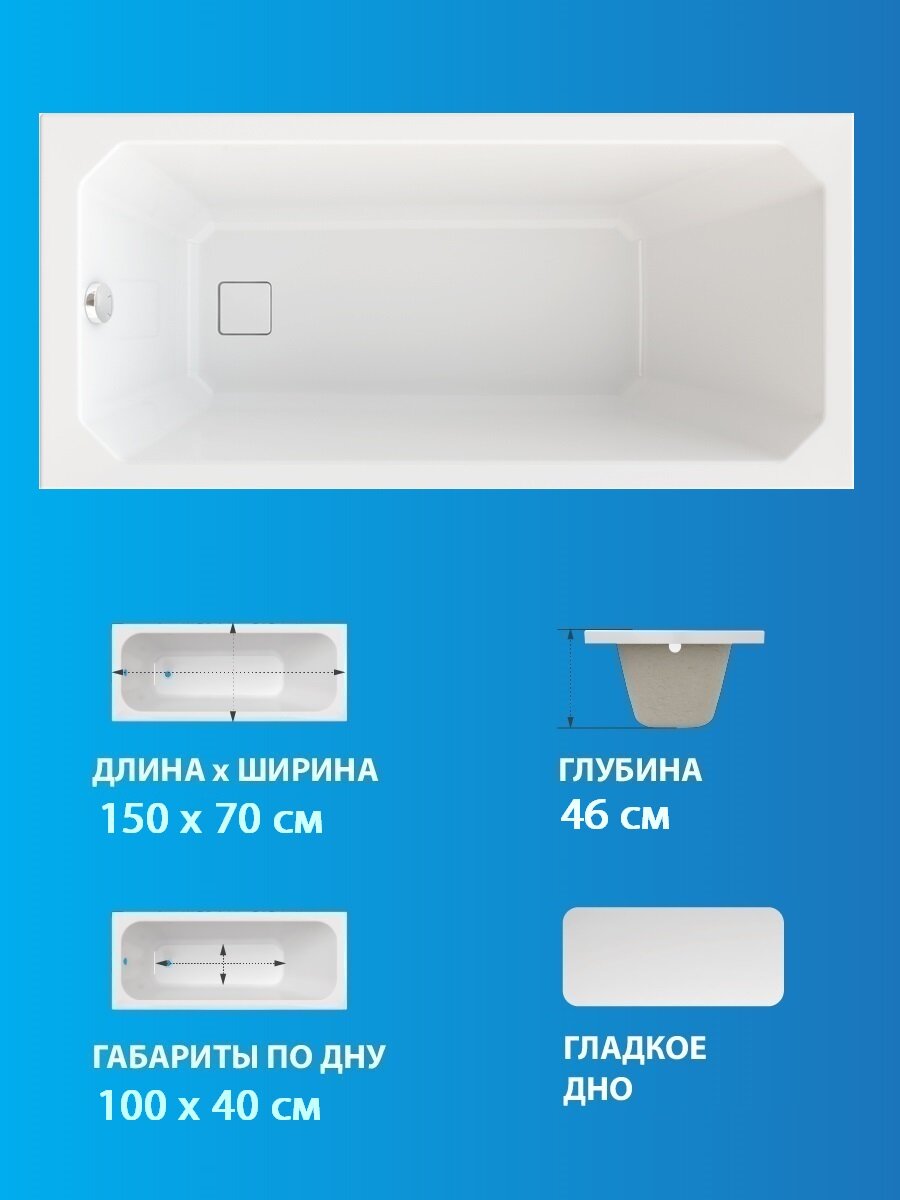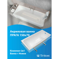 Ванна акриловая Triton Прага 150х70 с декоративной крышкой слива в комплекте с ножками: сравнение цен, характеристики, фото, актуальное наличие и цены.
