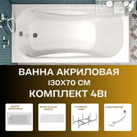Ванна акриловая 130х70 см CLASSIC комплект 4в1: Акриловая ванна, панель фронтальная, рама, слив-перелив 01кл1370Акп: сравнение цен, характеристики, фото, актуальное наличие и цены.