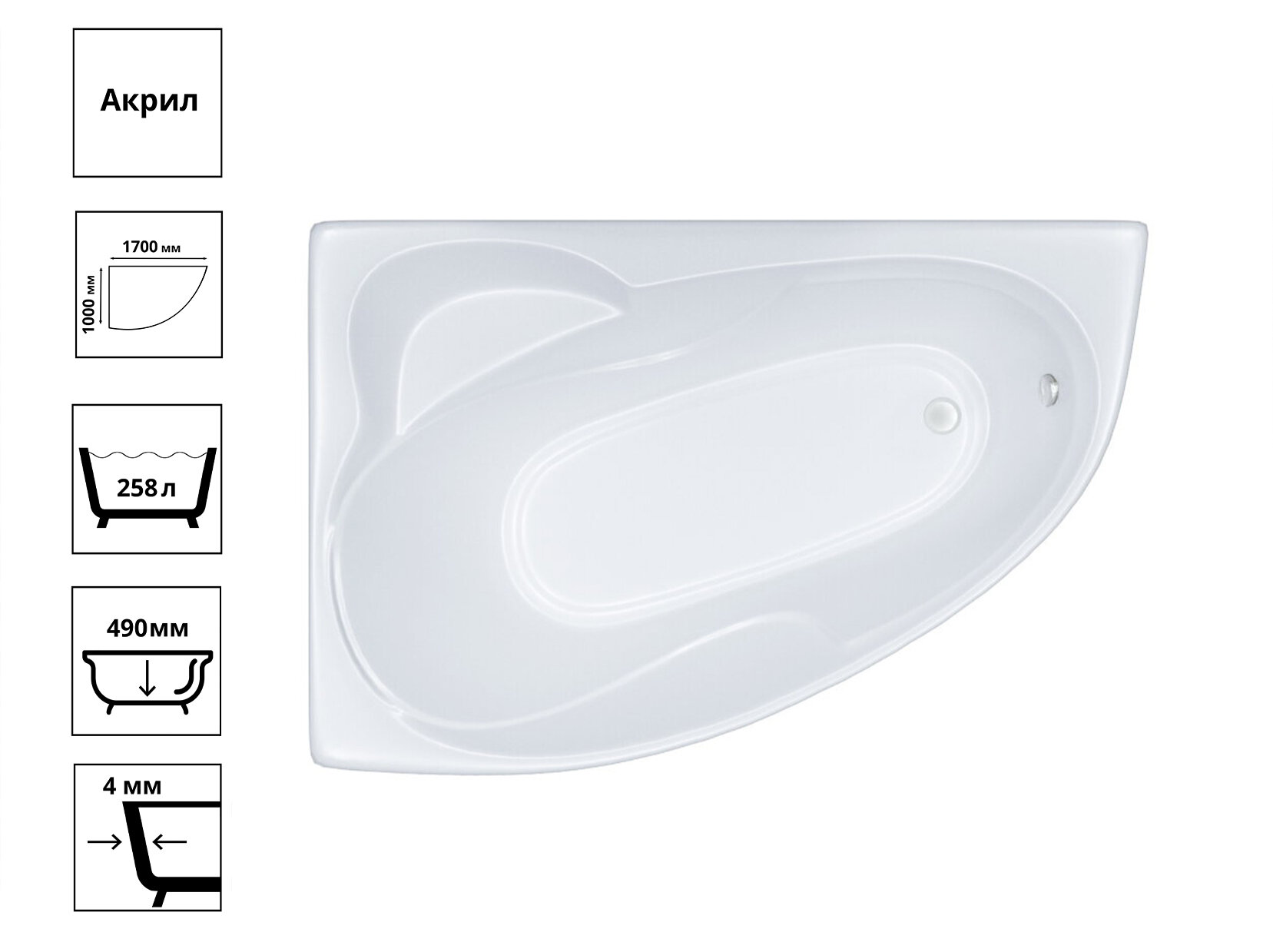 Ванна Triton Изабель 1700х1000 мм, правая, с каркасом: сравнение цен, характеристики, фото, актуальное наличие и цены.