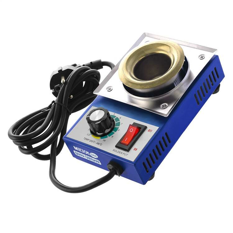 Мегеон 02825 - паяльная ванна предназначена для плавления припоя и последующего поддержания температуры в период выполнения работ. Применение изделия для группового лужения проводников радиокомпонентов перед пайкой значительно увеличит качество пайки и снизит вероятность перегрева. Ванна также может использоваться для групповой пайки и лужения проводов, кабельных наконечников и др. методом погружения в расплав. Изделие также может применяться для плавления различных низкотемпературных сплавов. Тигель из нержавеющей стали и металлический корпус значительно увеличат срок службы изделия. Металлический экран по периметру тигля исключит попадание припоя внутрь прибора. Небольшие габариты и масса ванны позволят размещать изделие на любых рабочих местах. Прибор станет незаменимым помощником при массовом производстве или большом количестве пайки и лужения. Особенности: - Ванна из нержавеющей стали - Пригодна для бессвинцовых припоев - Широкий диапазон установки температуры - Металлический корпус - Быстрый нагрев -