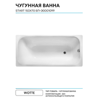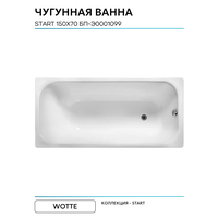 Купить Чугунная ванна Wotte Start 150×70 БП-э0001099 без антискользящего покрытия белый чугун с доставкой по всей России.