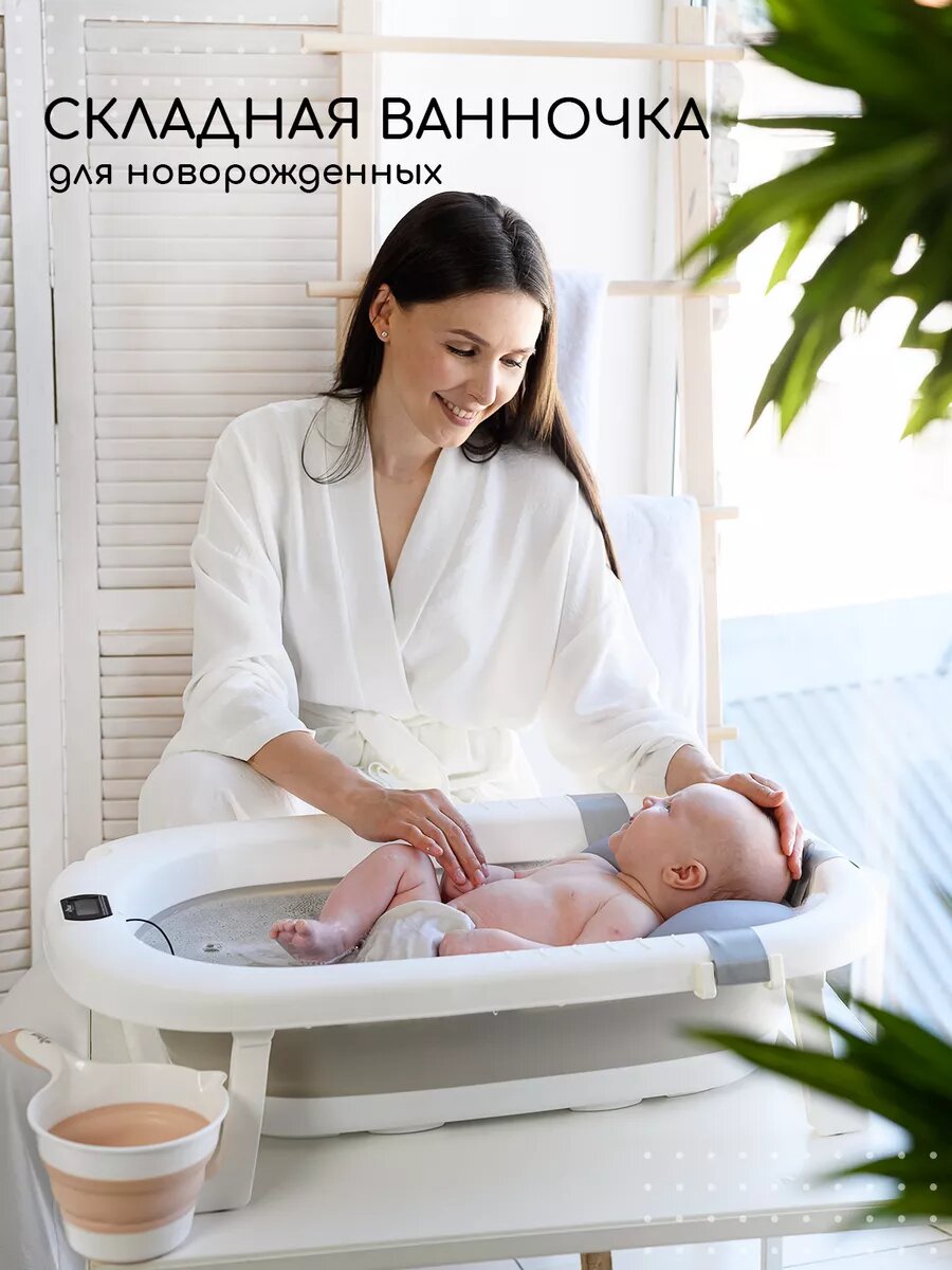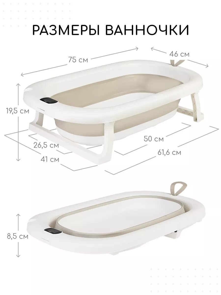 Ванночка для купания Miyoumi «Песочная», складная, с термометром, нескользящие дно: сравнение цен, характеристики, фото, актуальное наличие и цены.