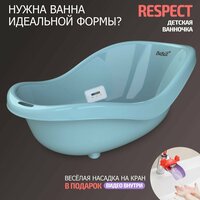 Компактная детская ванночка Respect — это оптимальное сочетание цены, качества и безопасности. Она изготовлена в России из пищевого пластика, который безопасен для детской кожи и приятен на ощупь. Встроенный термометр позволит контролировать температуру воды, а отверстие для слива с пробкой сделает процесс очистки легким и удобным. Компактные размеры позволяют разместить ее в любой ванне или душевой кабине. Для удобства хранения ванна оснащена отверстием для крючка. Чтобы сделать процесс купания еще более комфортным, можно воспользоваться гамаком, горкой или стульчиком для купания. Аксессуары приобретаются отдельно.