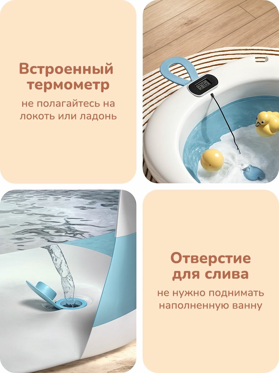 Ванночка для купания новорожденных детская складная с термометром и матрасом большая, голубая: сравнение цен, характеристики, фото, актуальное наличие и цены.