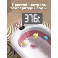 Ванночка для купания новорожденных детская складная с термометром и матрасом большая, розовая: сравнение цен, характеристики, фото, актуальное наличие и цены.
