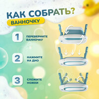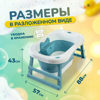 Это складная ванночка для купания младенцев, обладающая множеством достоинств. Главными из них являются легкость и простота конструкции, позволяющие родителям без проблем разложить ванночку, поставить её в удобном месте, наполнить и приступить к процедуре купания. Размер ванночки 90*58*19 делает её оптимальной для вашего малыша, а наличие сливного отверстия многократно упрощает как процесс уборки после купания, так и уход за детской ванночкой для купания младенцев.