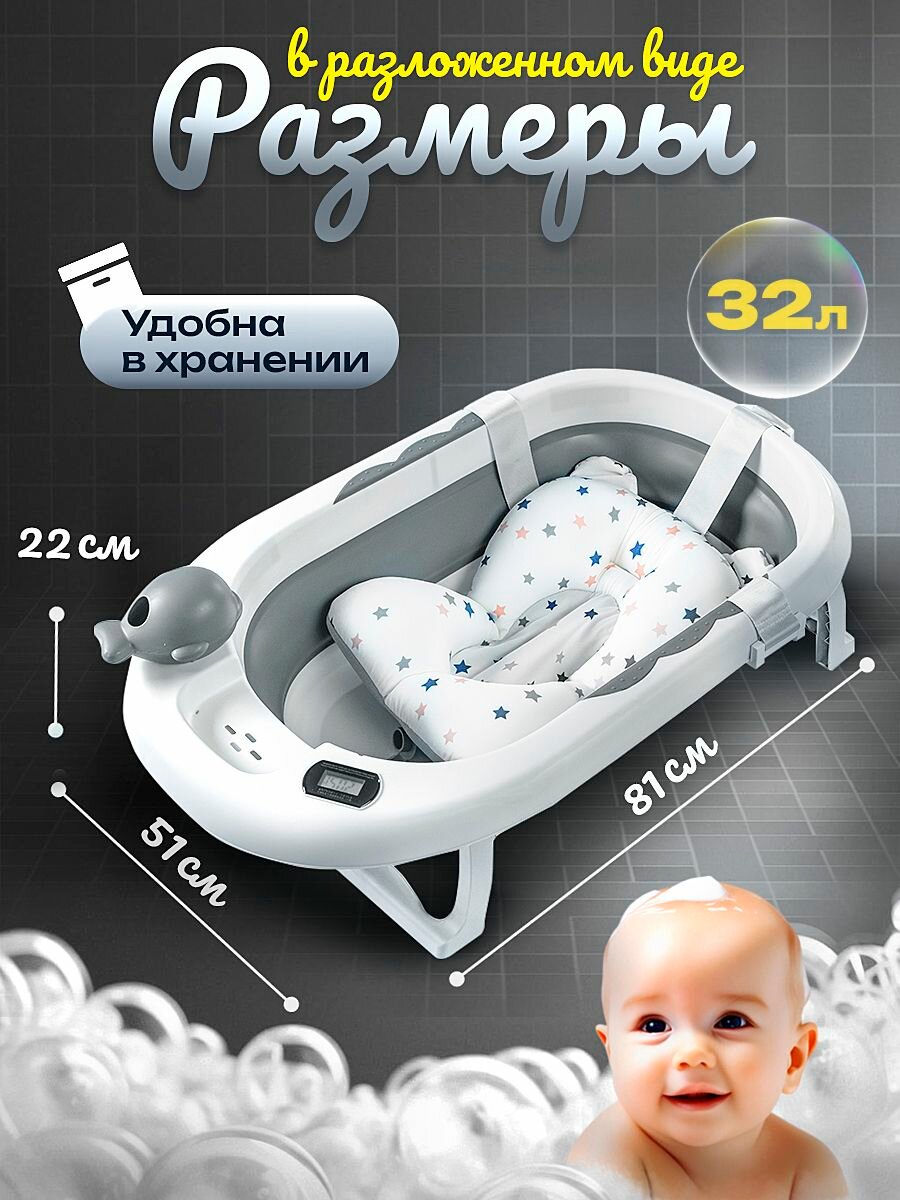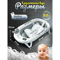 Это складная ванночка для купания младенцев, обладающая множеством достоинств. Главными из них являются легкость и простота конструкции, позволяющие родителям без проблем разложить ванночку, поставить её в удобном месте, наполнить и приступить к процедуре купания. Размер ванночки 82*52*10 делает её оптимальной для вашего малыша, а наличие сливного отверстия многократно упрощает как процесс уборки после купания, так и уход за детской ванночкой для купания младенцев.