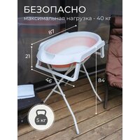 Детская розовая ванночка для купания новорожденных и малышей складная, с подушечкой, подставкой и шлангом, 87х46х21 см: сравнение цен, характеристики, фото, актуальное наличие и цены.