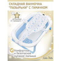 Ванночка для купания новорожденных с термометром LaLa-Kids идеально подойдет для комфортного и безопасного купания малышей с рождения! Правильно организованный процесс купания подарит множество приятных эмоций малышу и его родителям! Складная ванночка удобна в хранении и позволит вам сэкономить место в вашем доме, толщина в сложенном виде всего лишь 9 см. Наша ванночка для новорожденных имеет устойчивую безопасную конструкцию, легко складывается и раскладывается. Детская ванна оснащена противоскользящими накладками на ножках и фиксаторами, предотвращающими случайное складывание. Встроенный термометр позволяет легко подобрать комфортную температуру для купания малыша. Ванна для новорожденных оснащена сливом с герметичной пробкой. Также детская ванночка для купания имеет удобное крепление для душевой лейки. Ванночка для купания малыша «Капельки» очень легкая и компактная, ее вес оставляет всего лишь 1.5 кг. Складная ванна имеет премиальное качество материалов, она изготовлена из прочного полипропилена и экологичного термоэластопласта. Объем - 40 л. Данная модель подойдет детям до 20 кг. Гамак для купания имеет эргономичный дизайн, разработанный для максимального комфорта малыша. Мягкий подголовник обеспечивает правильное положение головы и шеи малыша, что особенно важно в первые месяцы жизни. Горка для купания новорожденных крепится к бортикам детской ванночки с помощью 3-х регулируемых ремней, длина которых регулируется с помощью накручивания на пластиковое крепление. Набор для купания сертифицирован. Гарантийный срок 14 дней.